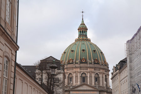 city view with Frederiks church in Copenhagen, the capital city of Denmark