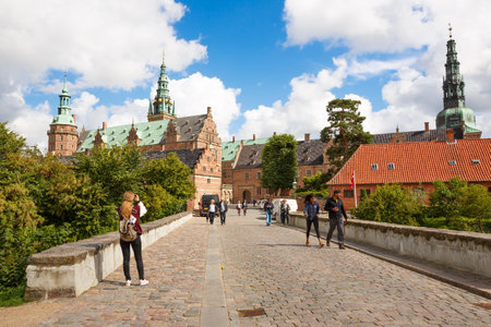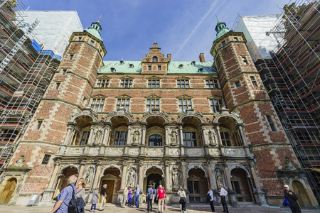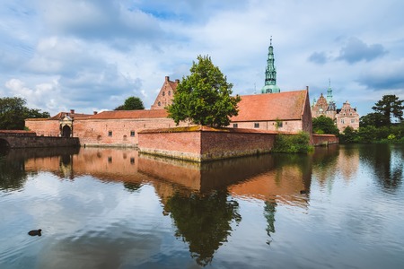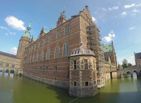 HILLEROD, DENMARK - August 20, 2017 - External view of Renaissance Frederiksborg Castle (Frederiksborg Slot, XVII century).