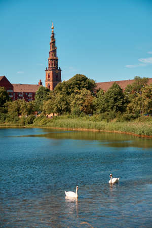 City of Copenhagen. Beautiful silhouettes of historical buildings over the canal at sunset. Denmark. European architecture. Architecture.