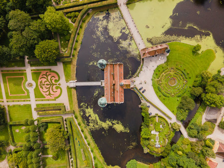 Aerial views of Egeskov Castle in Denmark