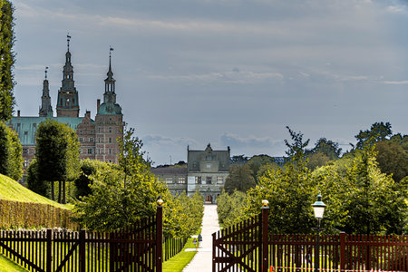 Hillerod, Denmark - June, 2016: Beautiful view of Fredensborg palace in Hilleroed, Denmark. Was shot from public park. Frederiksborg castle, the largest Renaissance palace in Denmark and Scandinavia.