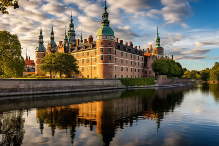 Afternoon exterior view of the famous Frederiksborg Castle at Municipality, Denmark