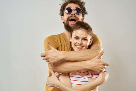 Man in sunglasses next to woman in communication fun friendship lifestyle