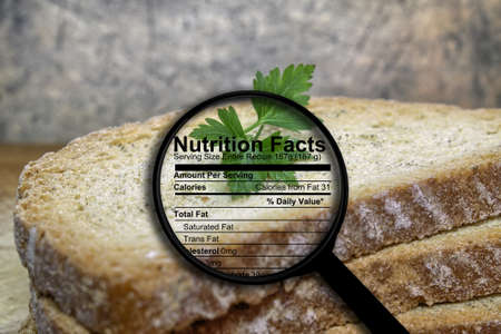 Fresh whole grain seeded bread, organic wheat flour, closeup slice texture as background for food blog or cook book recipes