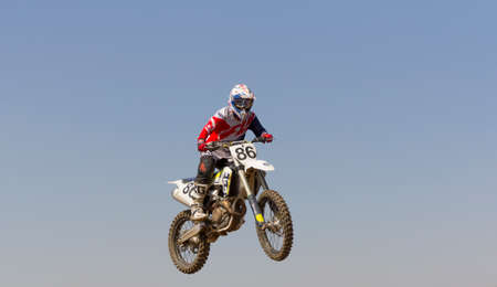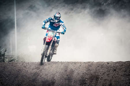 San Miguel, Spain, May 21, 2017: unknow motocross rider competes during the regional Motocross Tenerife championship