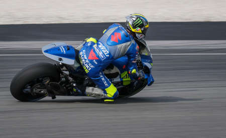 Sepang, Malaysia - Feb. 08, 2020 : Suzuki Ecstar's Spanish rider Joan Mir during the pre-season MotoGP winter test at the Sepang International Circuit in Sepang