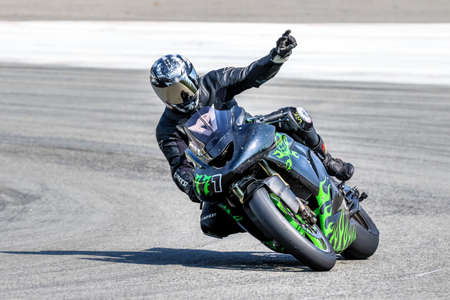 Hockenheim, Germany - June 27, 2019 : Motorcycle race training at Baden-Wurttemberg race Center or Hockenheimring, a motor racing course for people racing and visit at Hockenheim city