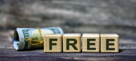 FREE word concept on cubes with a Banknote