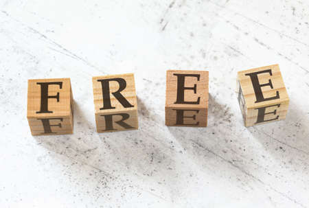 Free Time, word cube with white background.close up of shadow of 3d charcaters,Business Concept.3D rendering on red background.