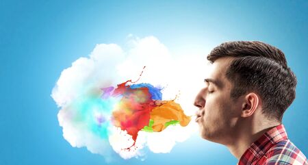 Young man with smoke in front of head