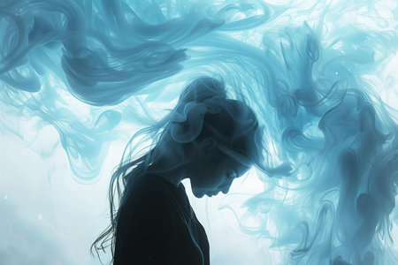 Silhouette of a woman with blue smoke on a dark background