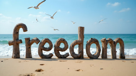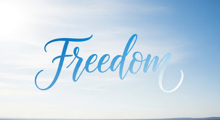 a serene image of freedom with blue sky and artistic typography for inspiration.