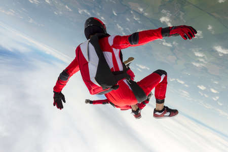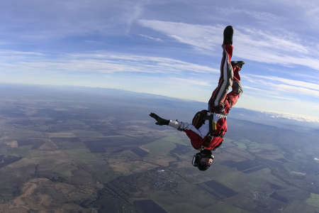 Skydiving. Freefly jump. A skydiver is falling in headdown position.