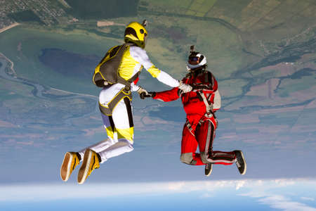 Skydiving. Men in free fall. Skydiving extreme sport.