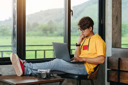 Lifestyle series: Asian man using laptop surfing internet