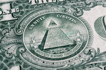 Eye of providence on reverse of one dollar banknote, detail from american money
