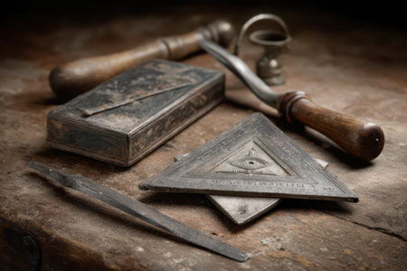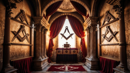 Mysterious and ornate interior showcasing masonic symbols, perfect for projects related to history, secret societies, and symbolism