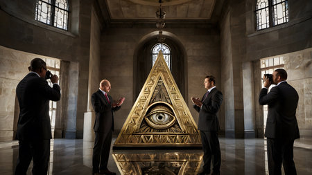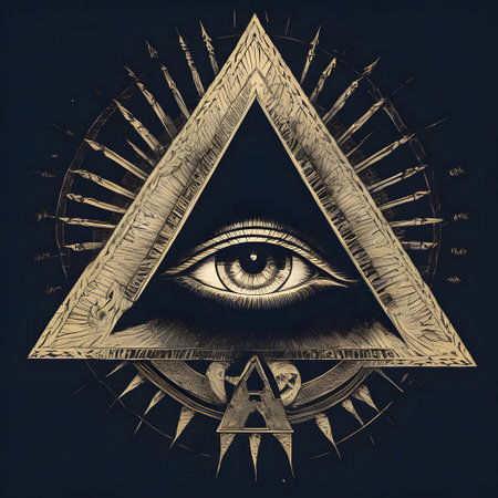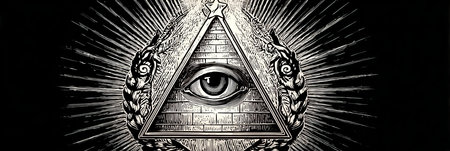Eye of providence, all seeing eye, mason pyramid with gold details, concept of masonic secret societies. Unveiling the mysteries of the Mystic Illuminati Eye.