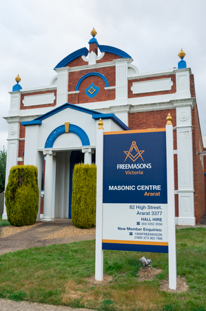 Ararat, Australia - October 21, 2017: Freemasons Victoria is the Victorian Freemasonry body. This is the Masonic Centre in Ararat in western Victoria.