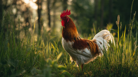 Idyllic Countryside, Majestic Rooster at Sunrise