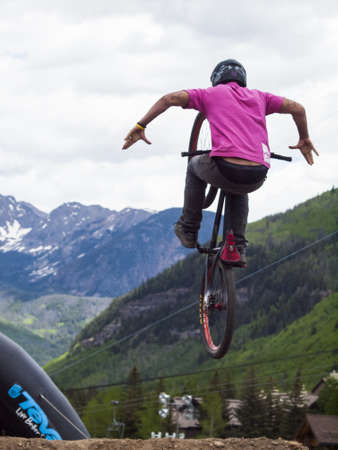 Slopestyle biking at 2012 Summer Teva Mountain Games. Vail, Colorado.