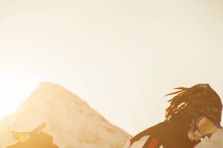 reckless snowboards prepare for defense, you can see the upper body, the mountain, the dreadlocks and the suggestive light