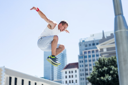 Athletic man doing parkour in the city on a sunny day