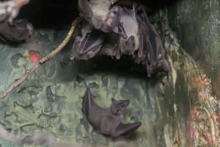 esser false vampire bat are sleeping in the cave hanging on the ceiling period midday