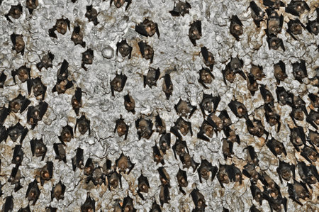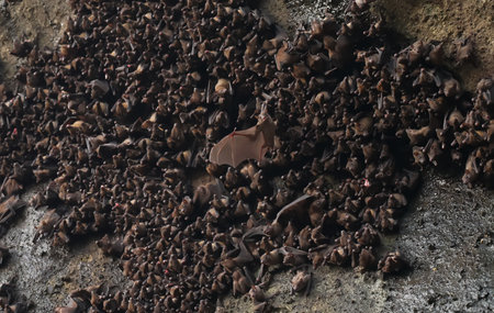Colony of the Common Vampire Bat (Desmodus rotundus) in a limestone cave.