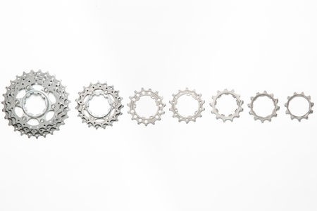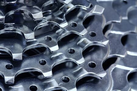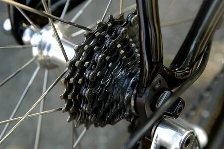 Mountain bike wheel gears closeup. Brake system. Close-up. Shifting speeds.