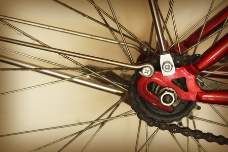 Home bike repair. Preparing for the bike season after winter. Close up shot parts