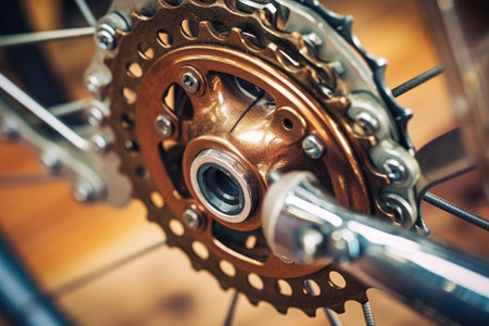 Explore the intricate beauty of a vintage bicycle gear mechanism captured in close-up, highlighting the craftsmanship and stunning metallic features.