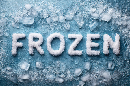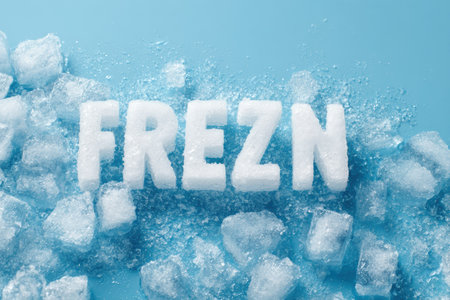 Eiskalt caption made of ice cubes on dark marble, meaning ice cold in German