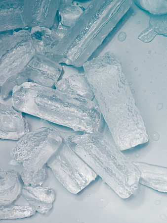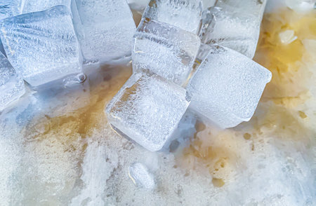 Macro detail of group of ice cubes with water droplets