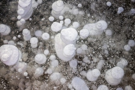 River ice, frozen air bubbles in water. Methane bubbles form in the organs of the Water mass when dead organic matter (leaves and animals) enters and sinks to the bottom