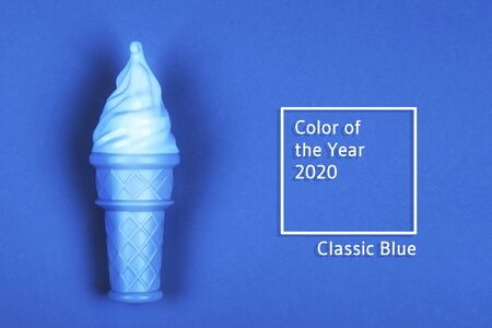 One creamy ice cream with cone toned in classic trendy blue background. Color trend of 2020 concept.