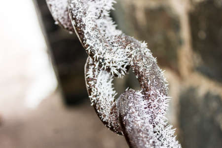 Helsinki, Finland. Metal chain covered in ice and snow