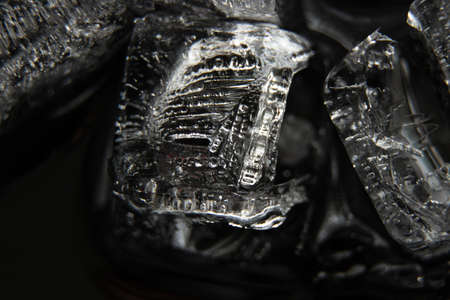 ice cubes on black background macro photo