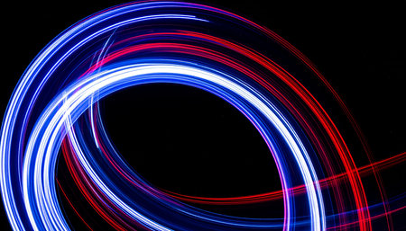 A display of colorful neon light trails crisscrossing against a dark background, evoking a sense of motion and energy. The vibrant streaks of blue, red, and purple lights create a dynamic and futuristic atmosphere.