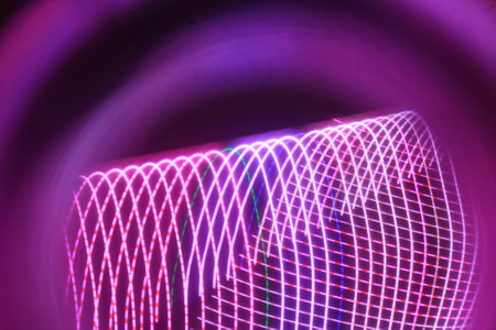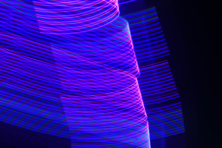 Dynamic motion blur of light trails resembling lightning on a dark background
