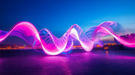This captivating image showcases dynamic and vibrant light waves in a variety of colors, creating abstract patterns that evoke energy and motion.