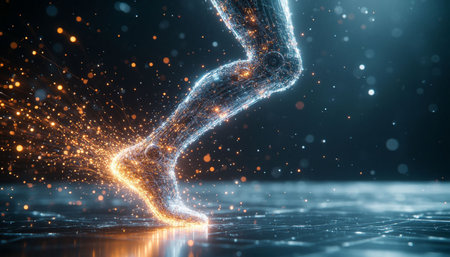 A vibrant close-up capturing a person walking through water, creating dynamic splashes under warm sunlight, evoking a sense of adventure and freedom.