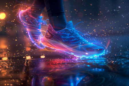 A striking image capturing the swift motion of running shoes, showcasing energy and performance. Ideal for fitness and athletic-themed projects.