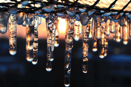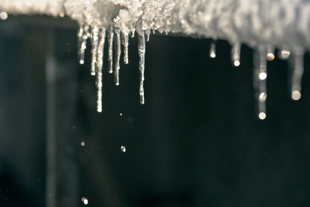 Icicles on a cold winter day. Shallow depth of field. Toned.