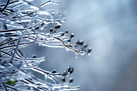 Freezing rain, Branch coveren with ice, background use.Copy space.