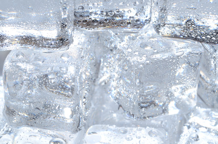 Macro detail of group of ice cubes with water droplets