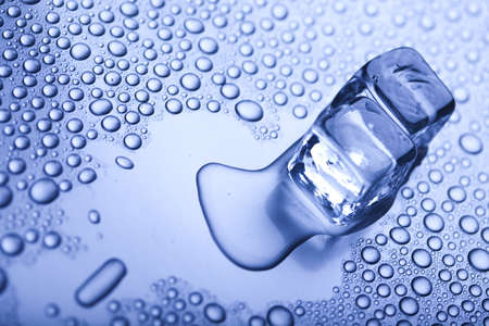 Blue background with cube ice. Fresh water