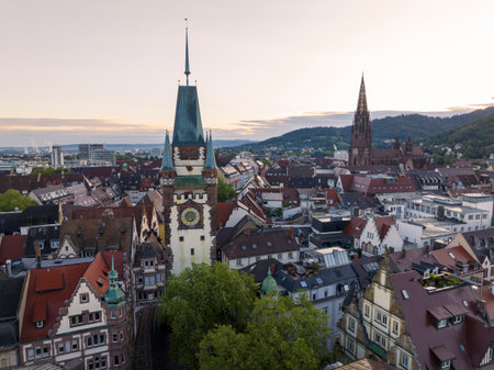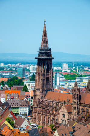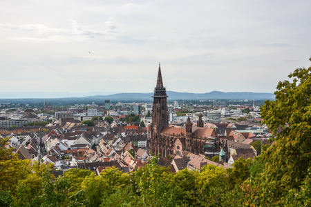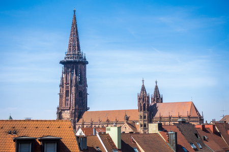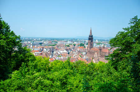 Cityscape of Freiburg with Munster cathedral tower