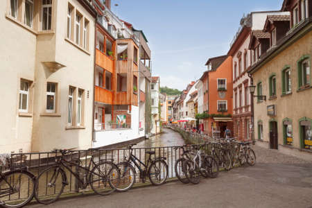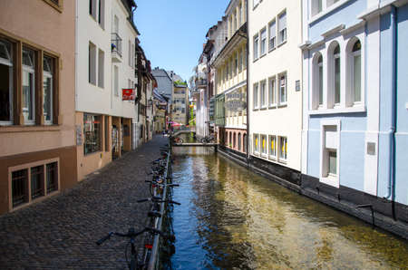 Old town, along the Gewerbeschule Freiburg canal. Germany 07.19.2017