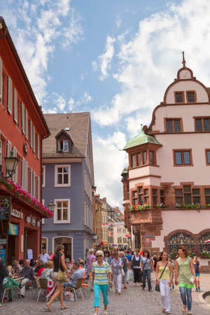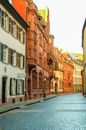 FREIBURG IM BREISGAU, GERMANY - AUGUST 6, 2014: Old town street in Freiburg, a city in the south-western part of Germany in the Baden-Wurttemberg state.